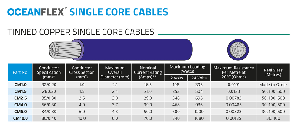 Oceanflex Tinned Copper Cable – 4mm2 Single Core