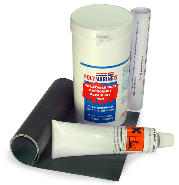 PolyMarine PVC Emergency Boat Repair Kit contains a 70ml tube of PVC adhesive, 35 x 15cm of PVC material and also the instructions.
