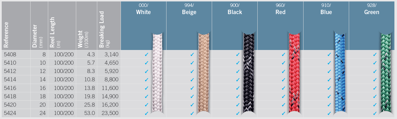 The Dyneema core is protected by a tightly woven polyester cover providing good abrasion resistance with the strength being delivered through the Dyneema SK78 core material.