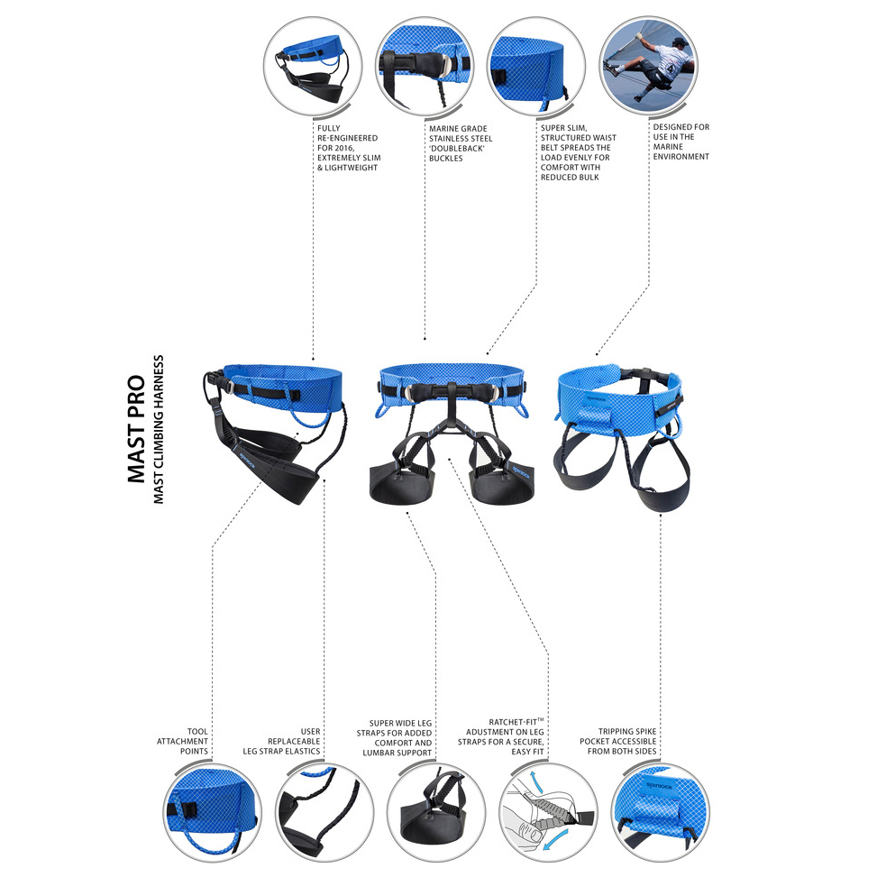 Fully re-engineered, the extremely slim and lightweight minimal design of the Spinlock Mast Pro Harness is the only one of its kind to be designed specifically for mast ascent and working at height in the marine environment. Ergonomically shaped, its comfortable as well as being durable.