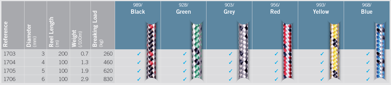 Sprintline from English Braids is available in a wide array of colours, 3mm & 4mm diameters and is sold by the meter or full rolls.